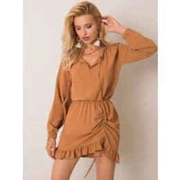 RUE PARIS Světle hnědé dámské šaty s volánem.