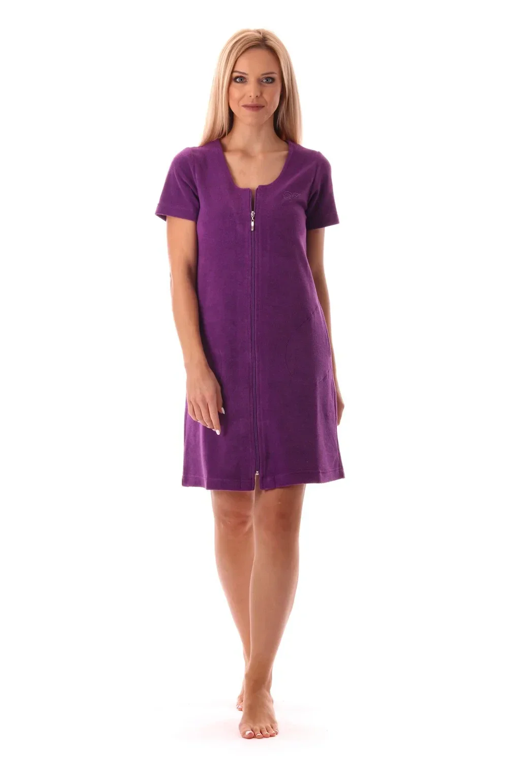 Krátké froté letní domácí šaty Bari mají pohodlný mírně projmutý střih, který díky pružnému materiálu sedne každé postavě. Zapínání na zip umožňuje rychlé oblékání a svlékání a zároveň zajišťuje , že se šaty nebudou při pohybu nechtěně rozevírat a vy se můžete v klidu věnovat svým aktivitám. Úpletové froté ve složení 80% bavlna a 20% polyester je příjemné na nošení a nenáročné na údržbu.