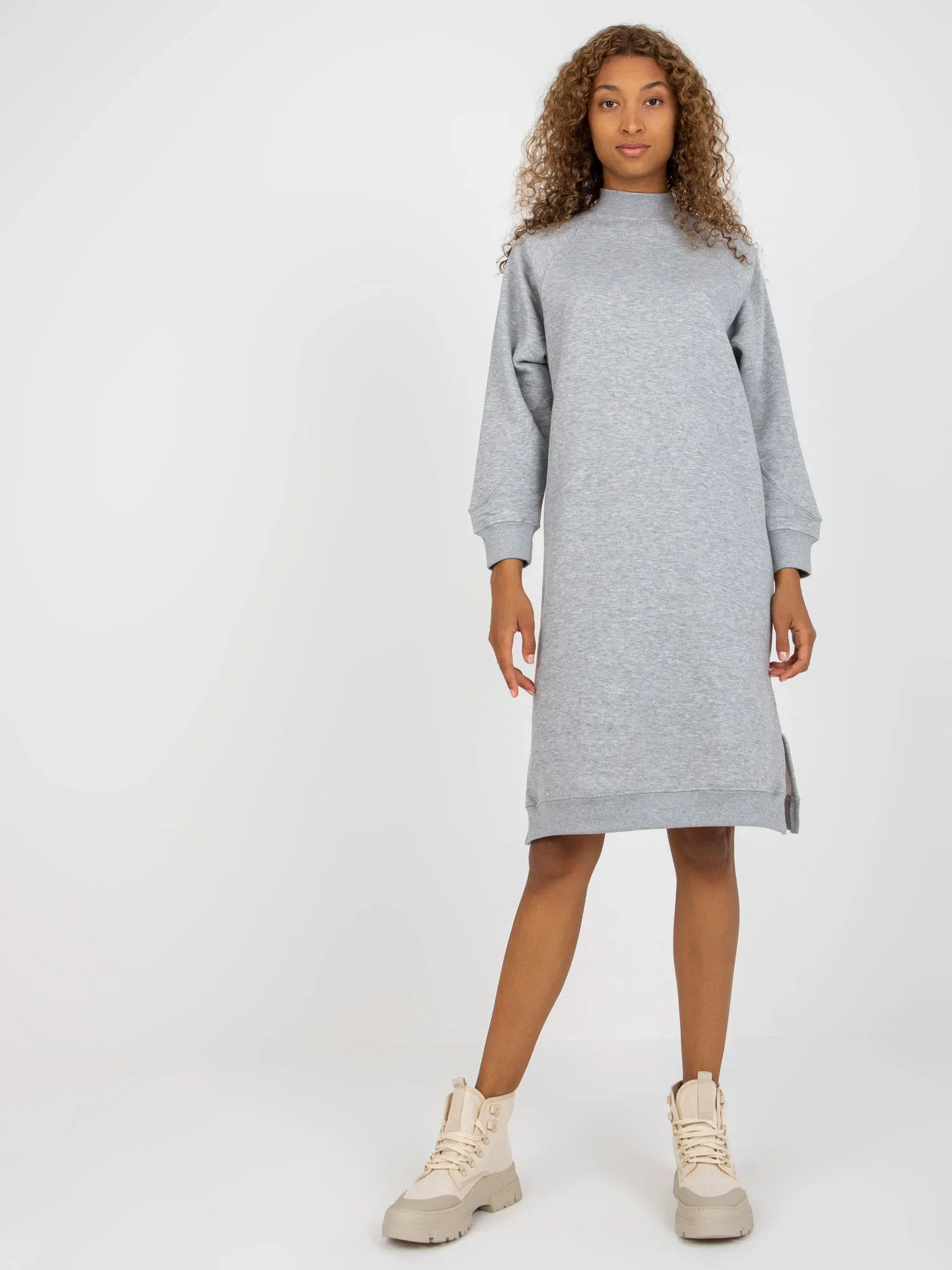Světle šedé jednoduché teplákové šaty s rozparky .