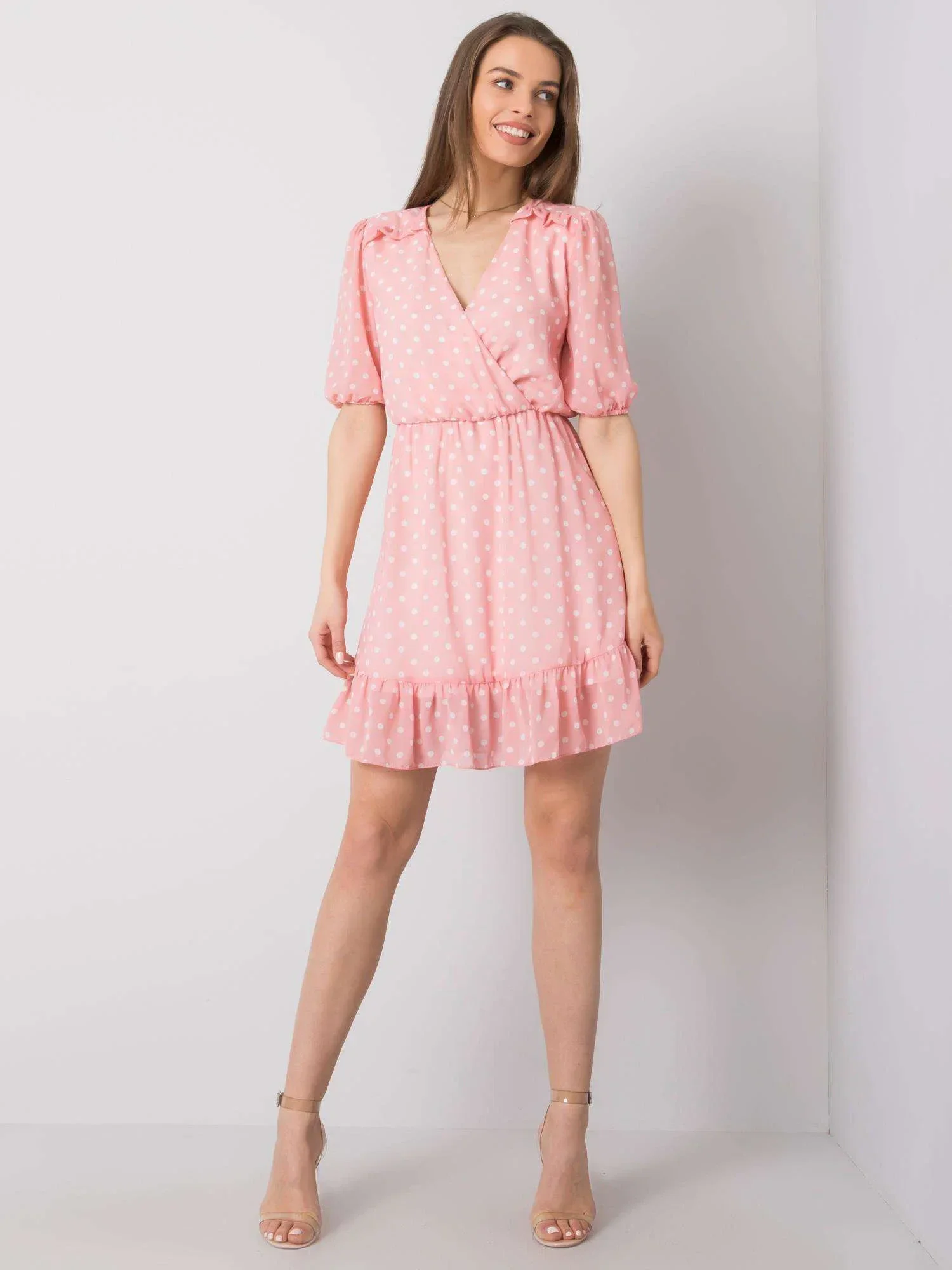 SUBLEVEL Růžové šaty s potiskem hrášku .