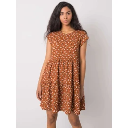 STITCH & SOUL Hnědé vzorované šaty s volánem.