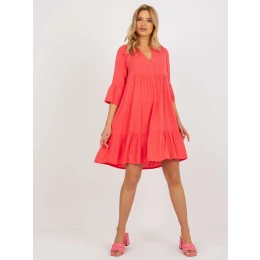 Korálové volné šaty s volánem a výstřihem do V PODLE .