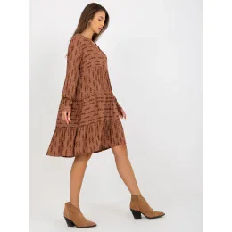 Hnědé šaty volného střihu s potisky a volánkem PODLE .