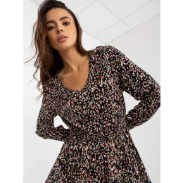 Černé rozšířené midi šaty s potisky FRESH MADE .
