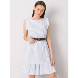 Světle modré pruhované dámské šaty.