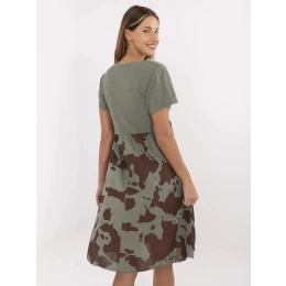 Rozměry šatů v jedné velikosti: šířka v podpaží - 46 cm (na plocho), šířka v podpaží - 92 cm (při natažení), délka rukávu - 17 cm, šířka v pase - 43 cm (na plocho), šířka v pase - 67 cm (při natažení), šířka v bocích - 63 cm, celková délka - 103 cm.