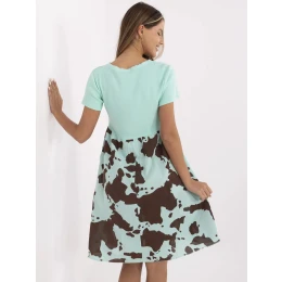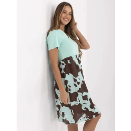 Rozměry šatů v jedné velikosti: šířka v podpaží - 46 cm (na plocho), šířka v podpaží - 92 cm (při natažení), délka rukávu - 17 cm, šířka v pase - 43 cm (na plocho), šířka v pase - 67 cm (při natažení), šířka v bocích - 63 cm, celková délka - 103 cm.
