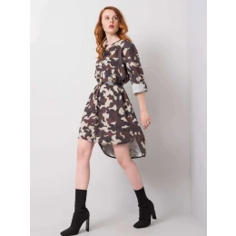 Béžové a hnědé šaty s potiskem moro.