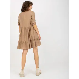 Tmavě béžové volné šaty s volánkem a výstřihem do V značky Harly .