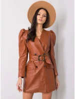 Hnědé základní šaty pro každodenní nošení odhalující ramena .