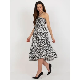 Černé midi šaty s potiskem a řasením .