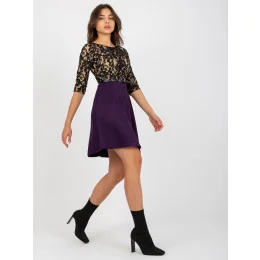 Černo-tmavě fialové koktejlové šaty s krajkovým vrškem .
