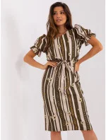 Khaki šaty s potiskem a krátkými rukávy .