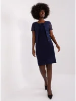 Námořnicky modré koktejlové šaty s krátkými rukávy