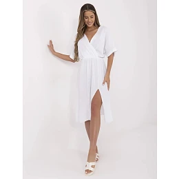 Rozměry šatů v jedné velikosti měřené naplocho: šířka v podpaží - 50 cm, šířka v pase - 28 cm (má naplocho), šířka v pase - 64 cm (po natažení), délka rukávu - 36 cm, šířka v bocích - 62 cm, celková délka - 115 cm.