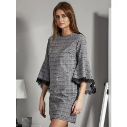 Černobílé šaty se vzorem a ozdobnými rukávy