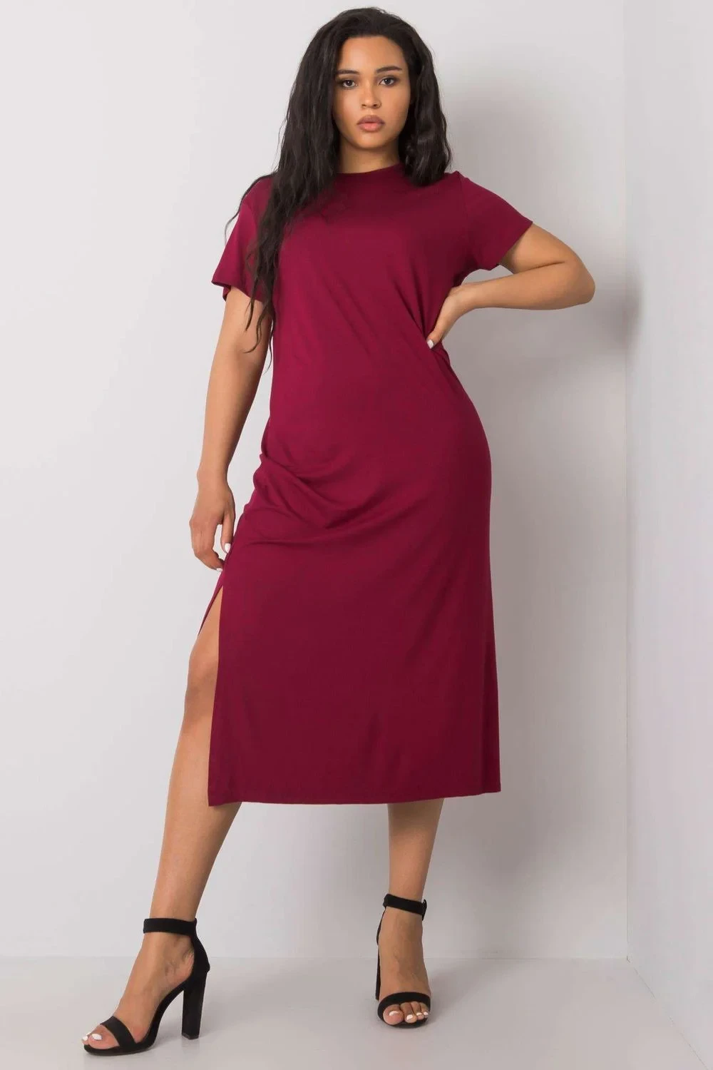 Letní šaty plus size pro každodenní nošení s krátkými rukávy a rozparky na bocích. Ideální volba pro mnoho příležitostí.