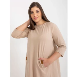 Tmavě béžové plus size mini šaty s 3/4 rukávy Dalenne .