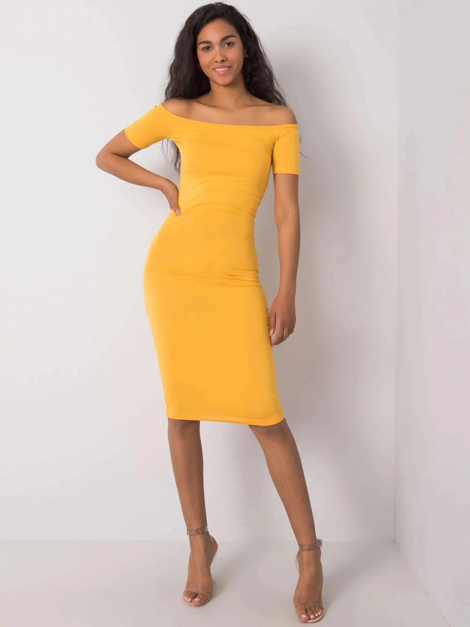 RUE PARIS Tmavě žluté dámské šaty.