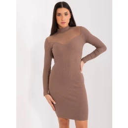Hnědé vypasované šaty s polovičním rolákem BASIC FEEL GOOD .