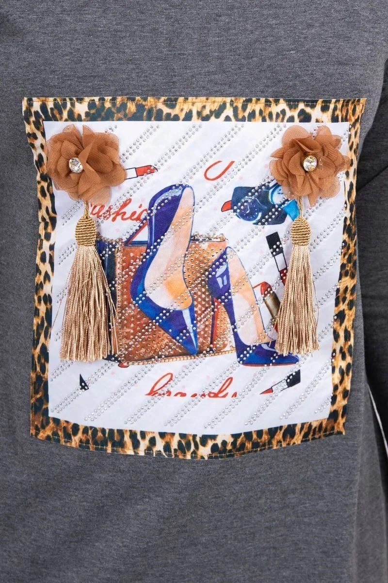 Představujeme vám módní šaty. Šaty má našitou grafiku. Šaty s průstřihy na ramenou. Ideální pro každodenní použití. Šaty jsou vyrobeny z vysoce kvalitního materiálu. Velikost je univerzální a vyhovuje dámám, které nosí velikost S, M nebo L.