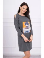 Představujeme vám módní šaty. Šaty mají na přední straně našitou grafiku dívky. Šaty s průstřihy na ramenou. Ideální pro každodenní použití. Šaty jsou vyrobeny z vysoce kvalitního materiálu. Velikost je univerzální a vyhovuje dámám, které nosí velikost S, M nebo L.