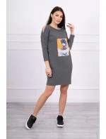 Šaty s 3D grafikou, grafitová krajka