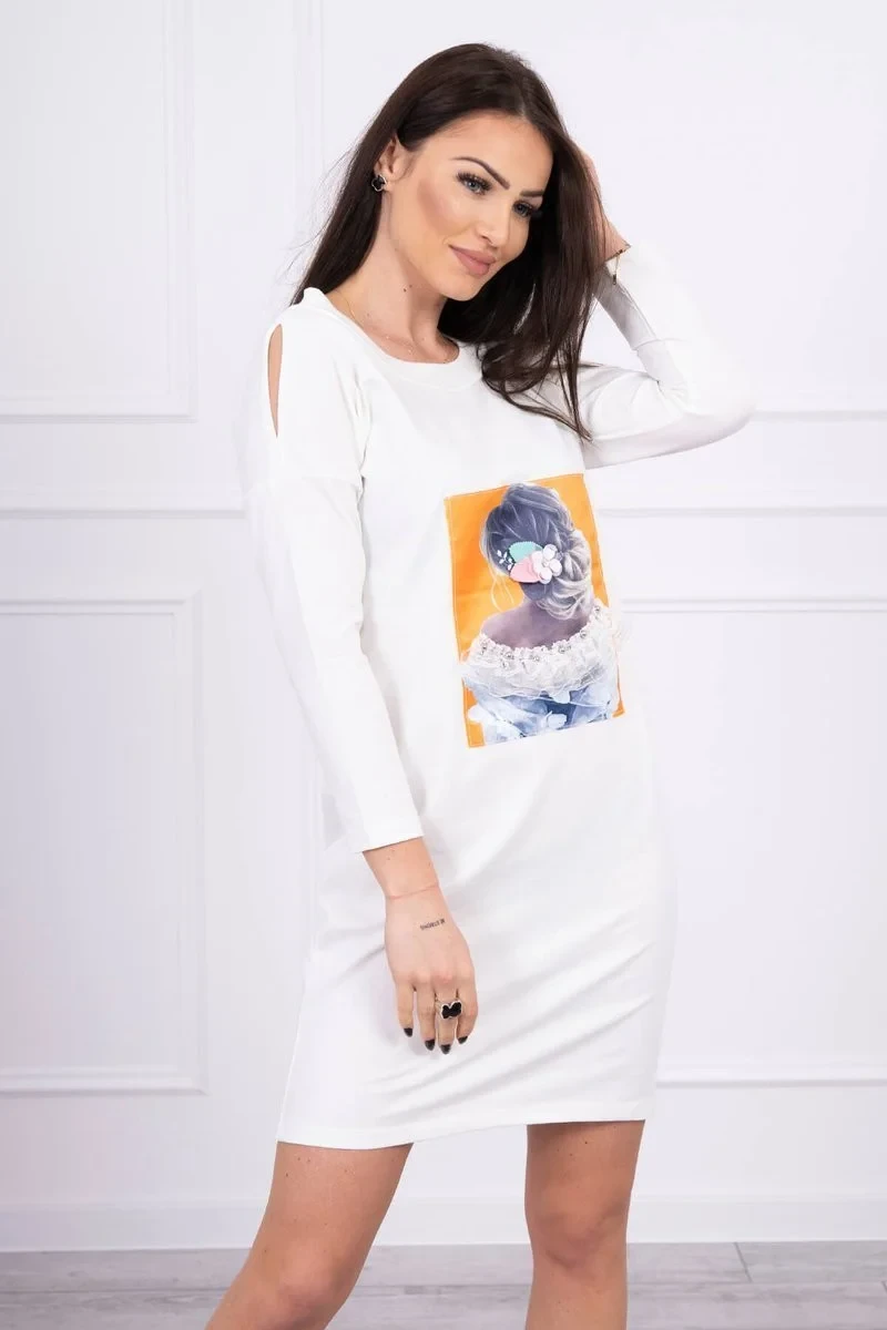 Představujeme vám módní šaty. Šaty mají na přední straně našitou grafiku dívky. Šaty s průstřihy na ramenou. Ideální pro každodenní použití. Šaty jsou vyrobeny z vysoce kvalitního materiálu. Velikost je univerzální a vyhovuje dámám, které nosí velikost S, M nebo L.