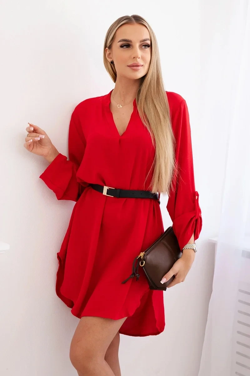Šaty s delšími zády a pásem červený