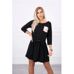 Kapsa pokrytá flitry. Šaty mají v pase vázačku.