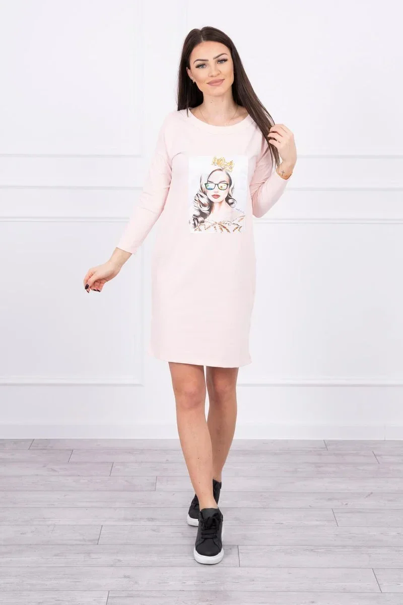 Šaty s grafikou dívky v 3D brýlích pudrově růžové