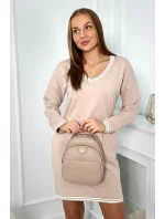Šaty s kapsami a výstřihem do V béžový