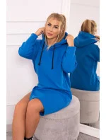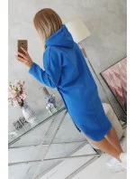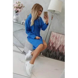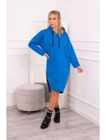 Šaty s kapucí a bočním rozparkem chrpově modré