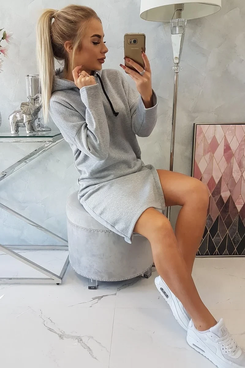 Šaty s kapucí a bočním rozparkem šedé