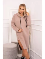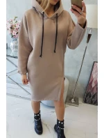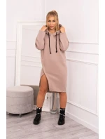 Šaty s kapucí a bočním rozparkem tmavě béžové