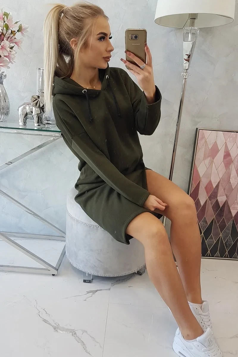 Šaty s kapucí a bočním rozparkem v barvě khaki