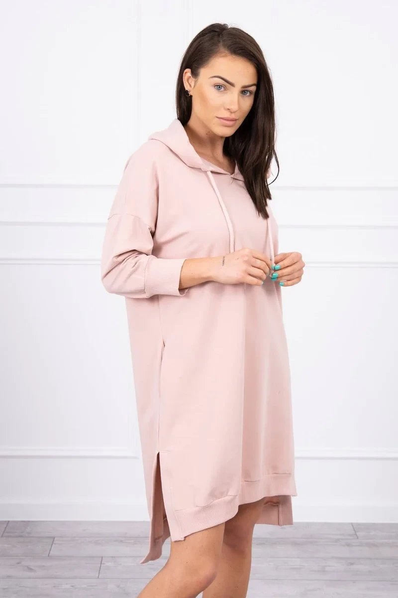 Šaty s kapucí a delšími zády tmavě pudrově růžové