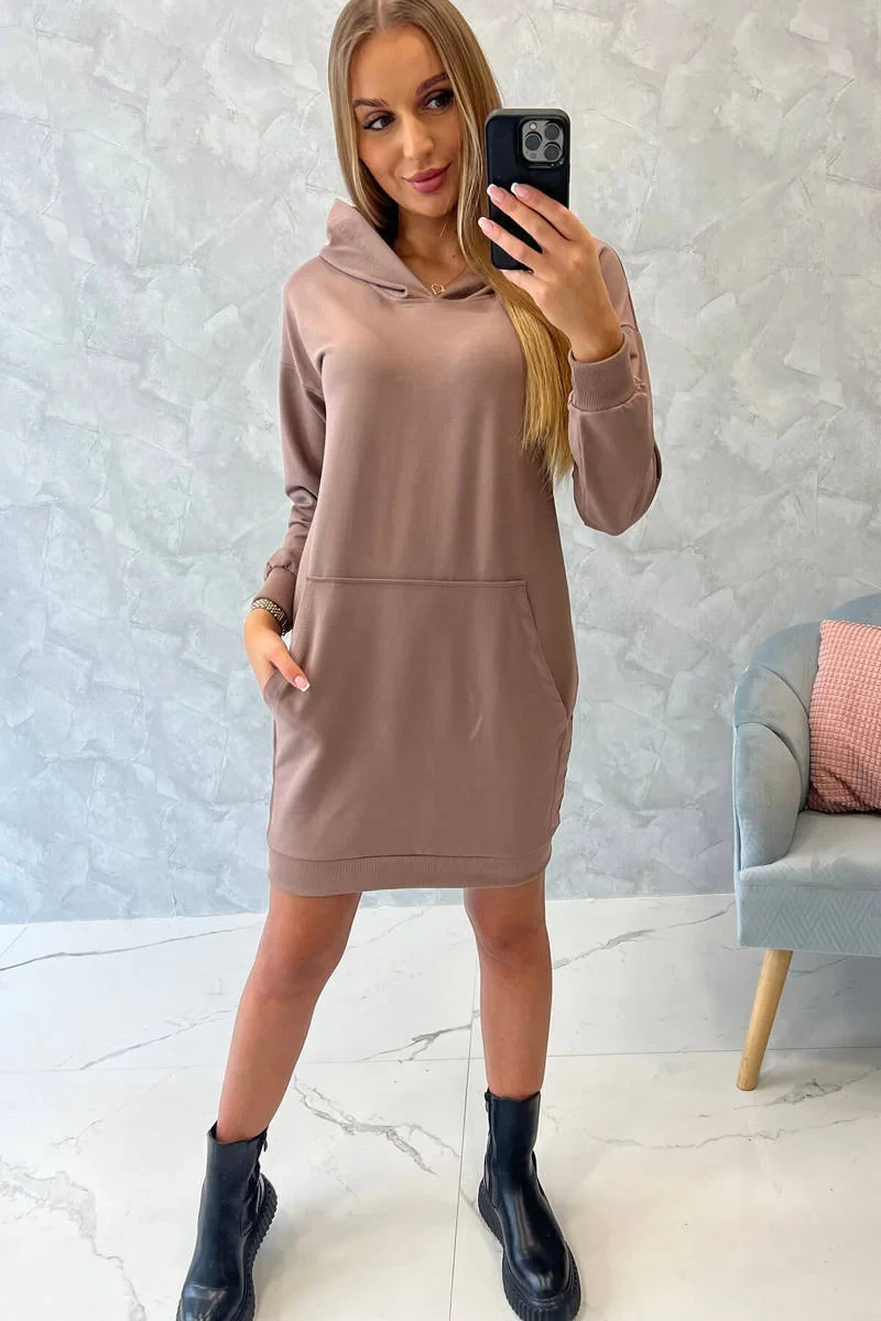 Představujeme vám pohodlné šaty. Šaty s kapucí a klokaní kapsou. Šaty nemají potisk, takže se hodí k široké škále outfitů. Šaty jsou vyrobeny z vysoce kvalitního materiálu. Velikost je univerzální a vyhovuje dámám, které nosí velikost S, M nebo L.