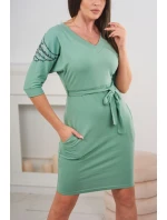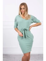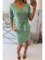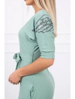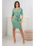 Šaty s křídly na ramenou tmavě mátové barvy