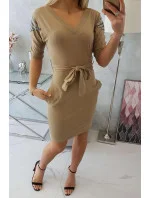 Představujeme vám módní šaty s ozdobnými křídly na ramenou. Šaty s výstřihem do V a zavazováním v pase. Šaty mají kapsy. Vynikající nabídka pro všechny dámy. Šaty jsou vyrobeny z vysoce kvalitního materiálu. Velikost je univerzální a vyhovuje dámám, které nosí velikost S, M nebo L.