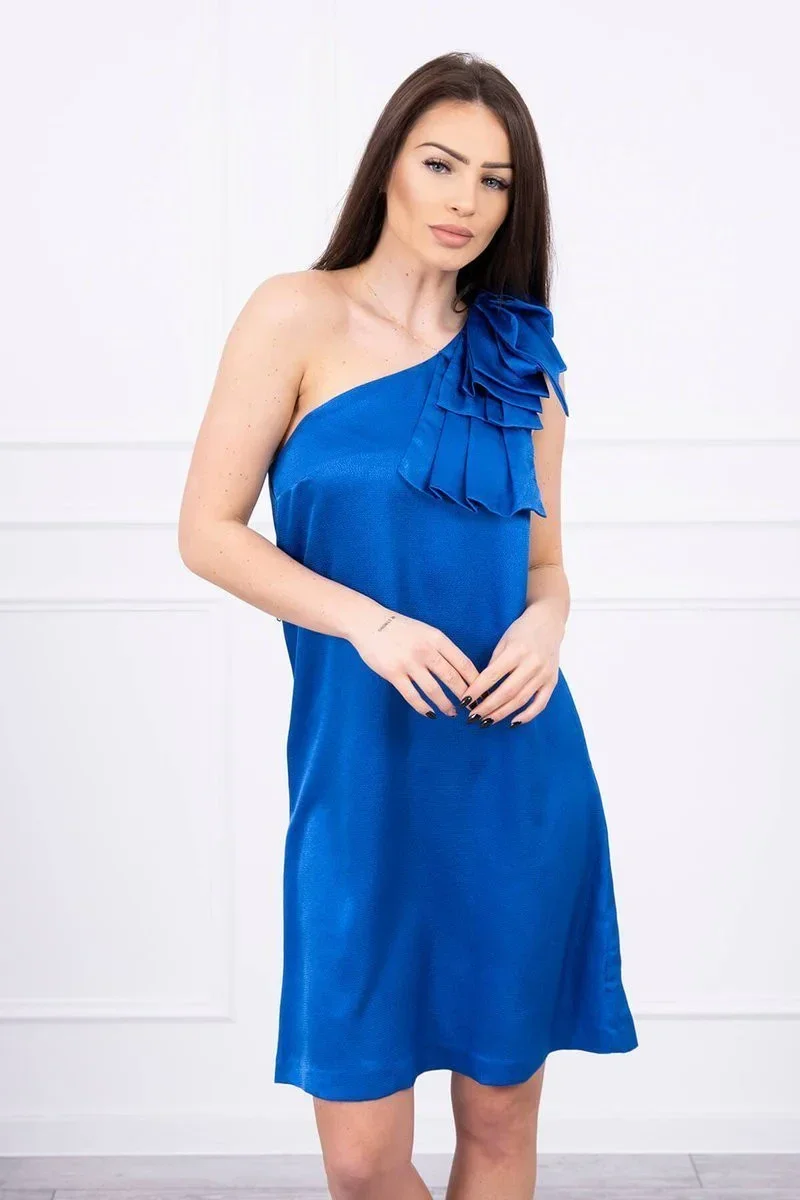 Šaty s mašlí na rameni v chrpově modré barvě