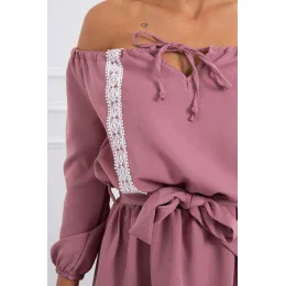 Šaty s odhalenými rameny a krajkou tmavě růžové barvy