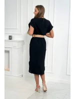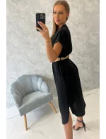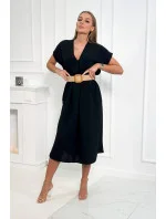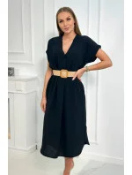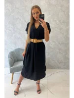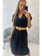 604-2 Smyslné černé hráškové šaty s obálkovým výstřihem a ozdobným páskem - bílé