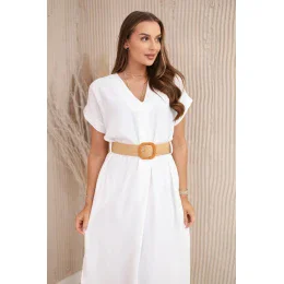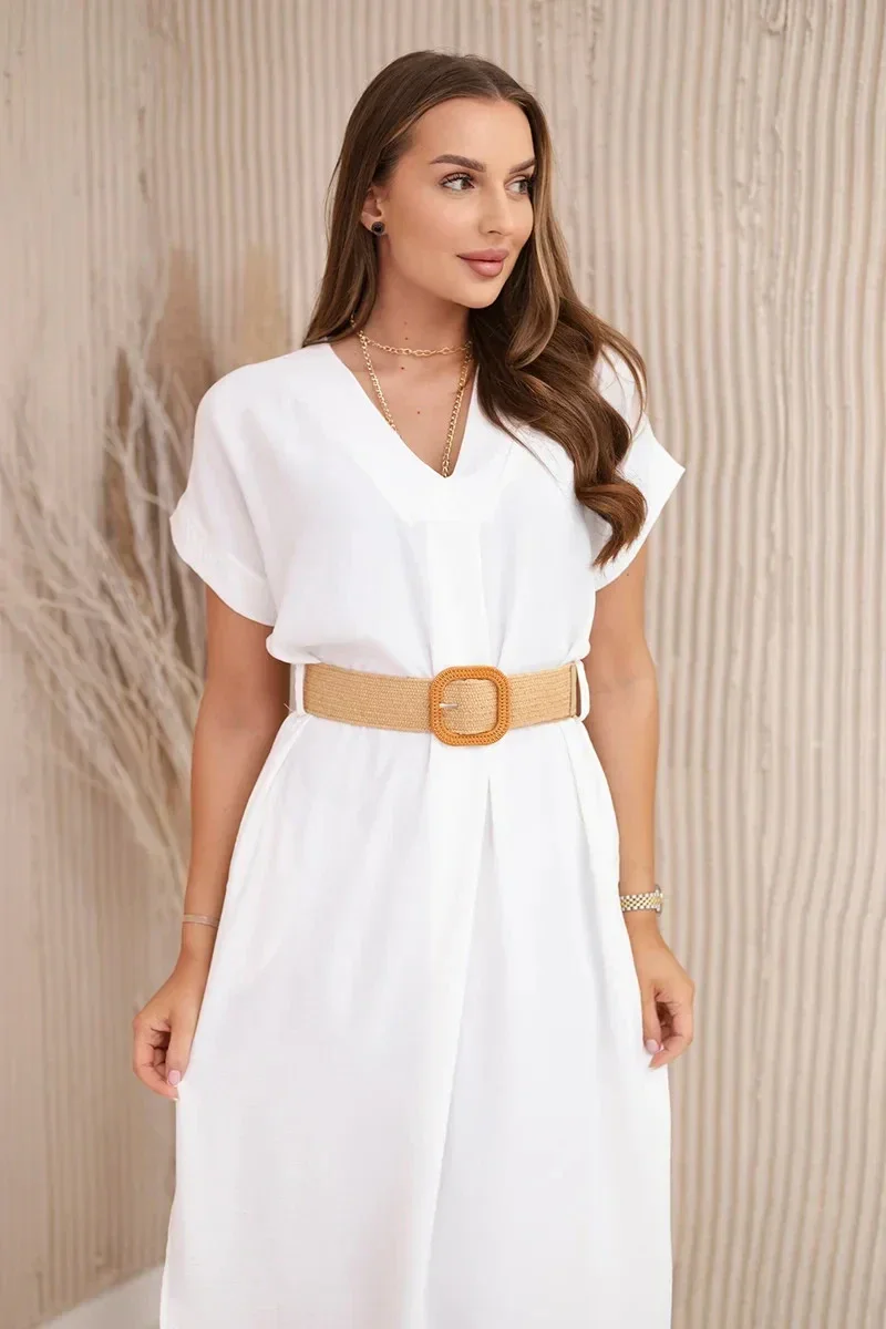 Představujeme vám pohodlné šaty s ozdobným páskem. Šaty mají ve spodní části boční rozparky. Šaty jsou vyrobeny z vysoce kvalitního materiálu. Velmi zajímavá nabídka pro všechny dámy. Velikost je univerzální a vyhovuje dámám, které nosí velikost S, M nebo L.