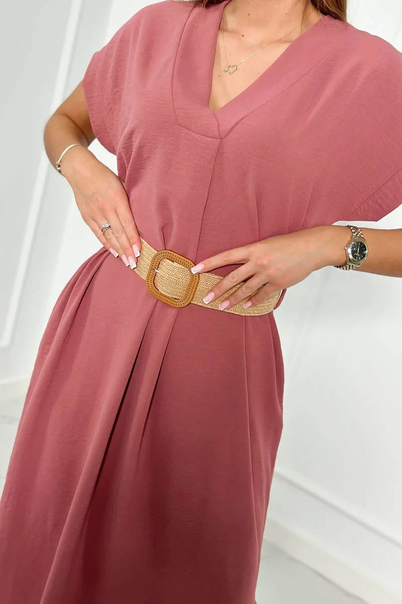 Představujeme vám pohodlné šaty s ozdobným páskem. Šaty mají ve spodní části boční rozparky. Šaty jsou vyrobeny z vysoce kvalitního materiálu. Velmi zajímavá nabídka pro všechny dámy. Velikost je univerzální a vyhovuje dámám, které nosí velikost S, M nebo L.