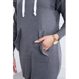 Šaty s ozdobnými volánky a kapucí v grafitové barvě
