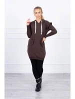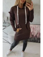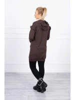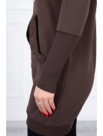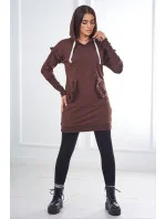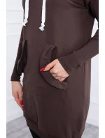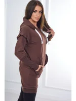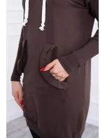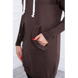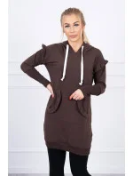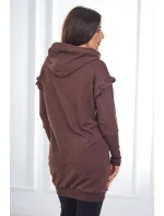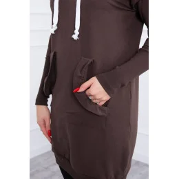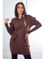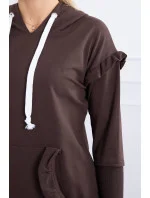 Šaty s ozdobnými volánky a kapucí v hnědé barvě