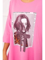 Šaty s potiskem a rozšířenou spodní částí růžové