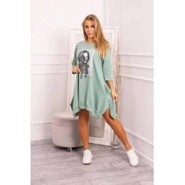 Šaty s potiskem a rozšířenou spodní částí tmavě mátové barvy