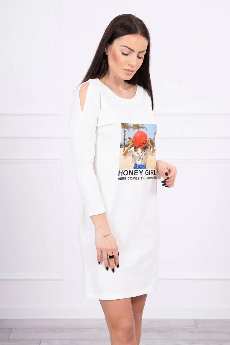 Představujeme vám módní šaty. Šaty má potisk. Šaty s průstřihy na ramenou. Ideální pro každodenní použití. Šaty jsou vyrobeny z vysoce kvalitního materiálu. Velikost je univerzální a vyhovuje dámám, které nosí velikost S, M nebo L.